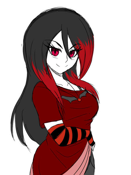 Considering she was already going through a gothic phase at this point, she figured she would dye her hair to match but kept the tips red so she still had an element of her origins on her.