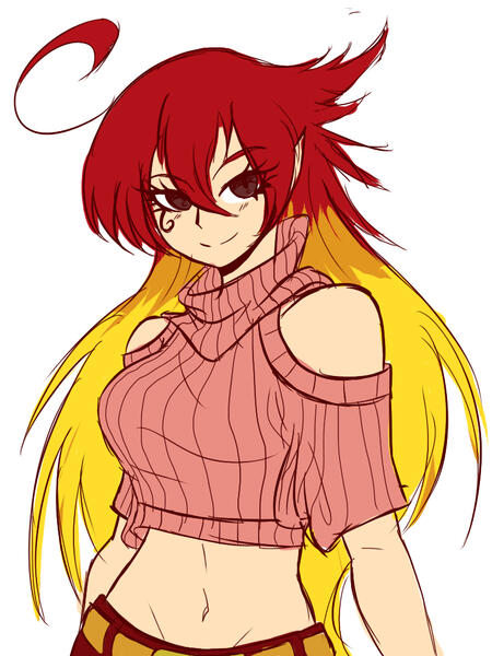 Considering she was already going through a gothic phase at this point, she figured she would dye her hair to match but kept the tips red so she still had an element of her origins on her.